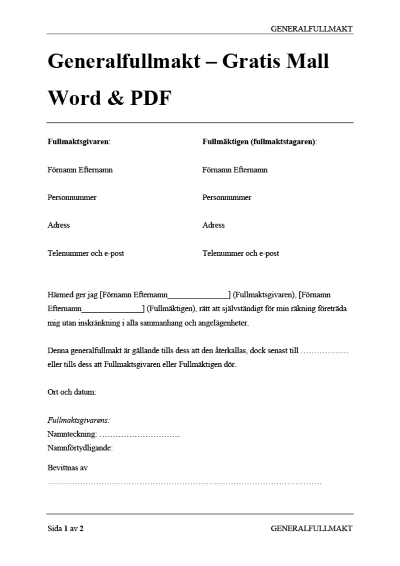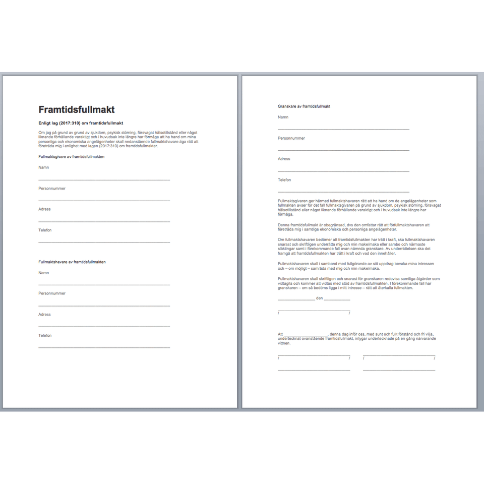 Ladda ner vår kostnadsfria framtidsfullmakt mall i Word-format. Säkerställ din framtida trygghet med detta juridiskt korrekta dokument. Enkelt, effektivt och helt gratis att använda.