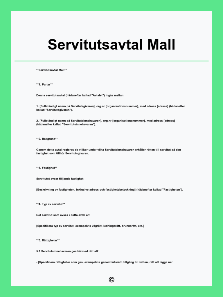 Ladda ner gratis avtalsservitut mall från vår webbplats. Enkla och juridiskt korrekta mallar för fastighetsägare och intressenter. Skapa avtal snabbt och smidigt med vår användarvänliga dokumentation.