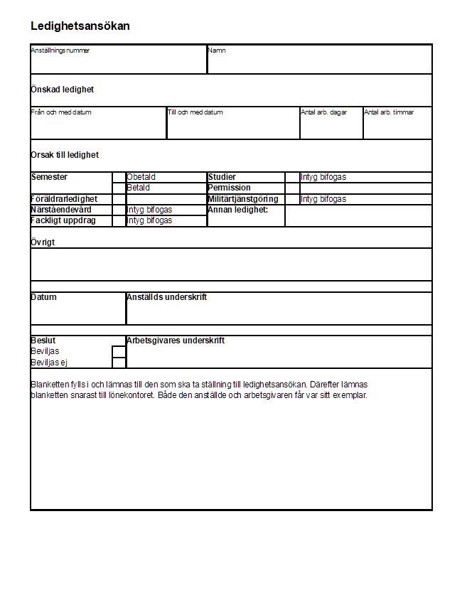 Ladda ner gratis blankett för tjänstledighetsansökan. Få mall för ledighet för studier och ansök smidigt om att ta studieledighet med vår praktiska, kostnadsfria PDF-mall.