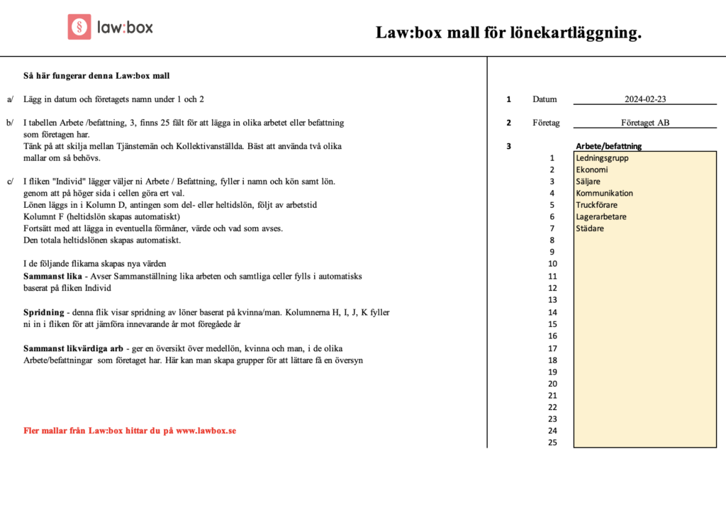 Ladda ner vår kostnadsfria lönekartläggning mall. Upptäck hur Lönetransparensdirektivet påverkar svenska företag och säkerställ rättvis lönesättning. Perfekt verktyg för HR och företagare i Sverige.